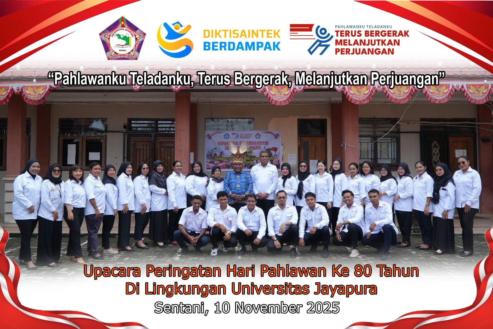 Kepala Kepala Lembaga Layanan Pendidikan Tinggi (LLDIKTI) Wilayah 14 Jadi Pembina Upacara Hari Pahlawan di Universitas Jayapura, Kabupaten Jayapura Dalam rangka memperingati Hari Pahlawan Nasional yang jatuh pada tanggal 10 November 2025, Kepala Kepala Lembaga Layanan Pendidikan Tinggi (LLDIKTI) Wilayah 14, Dr. Suriel Semuel Mofu, S.Pd., M.Ed. TEFL., M.Phil (Oxon) hadir